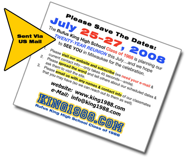We are also making efforts to contact our RKHS Family via Classmates.com, via the RKHS Alumni Association, via our roster from the 1988 reunion, via our old 1988 addresses, via any known e-addresses, and of course... VIA WORD-OF-MOUTH